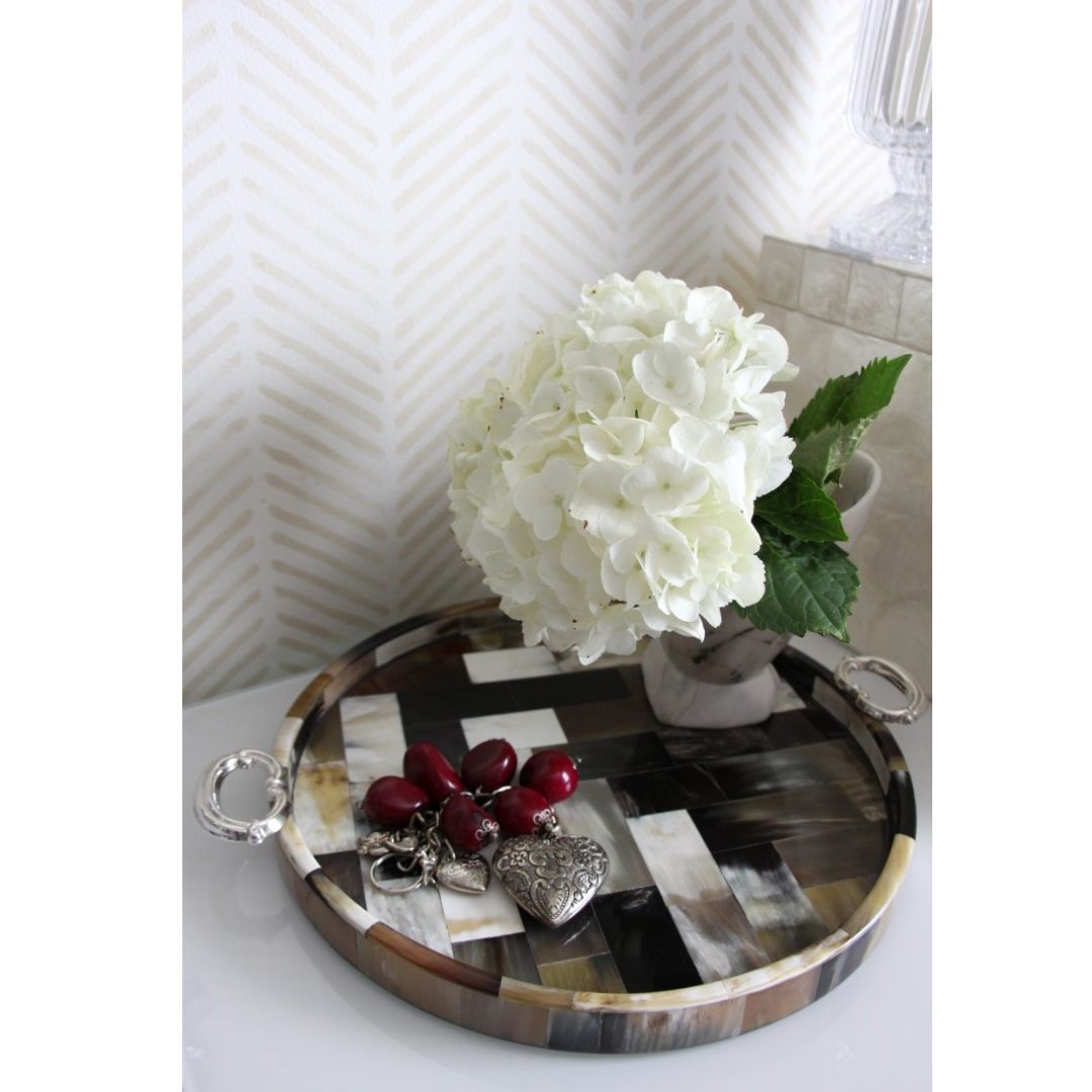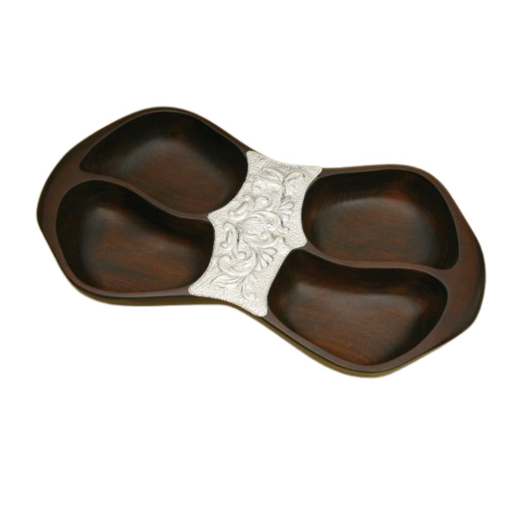 Precioso azafate con mosaicos de cacho tonos carey, asas de plaque.