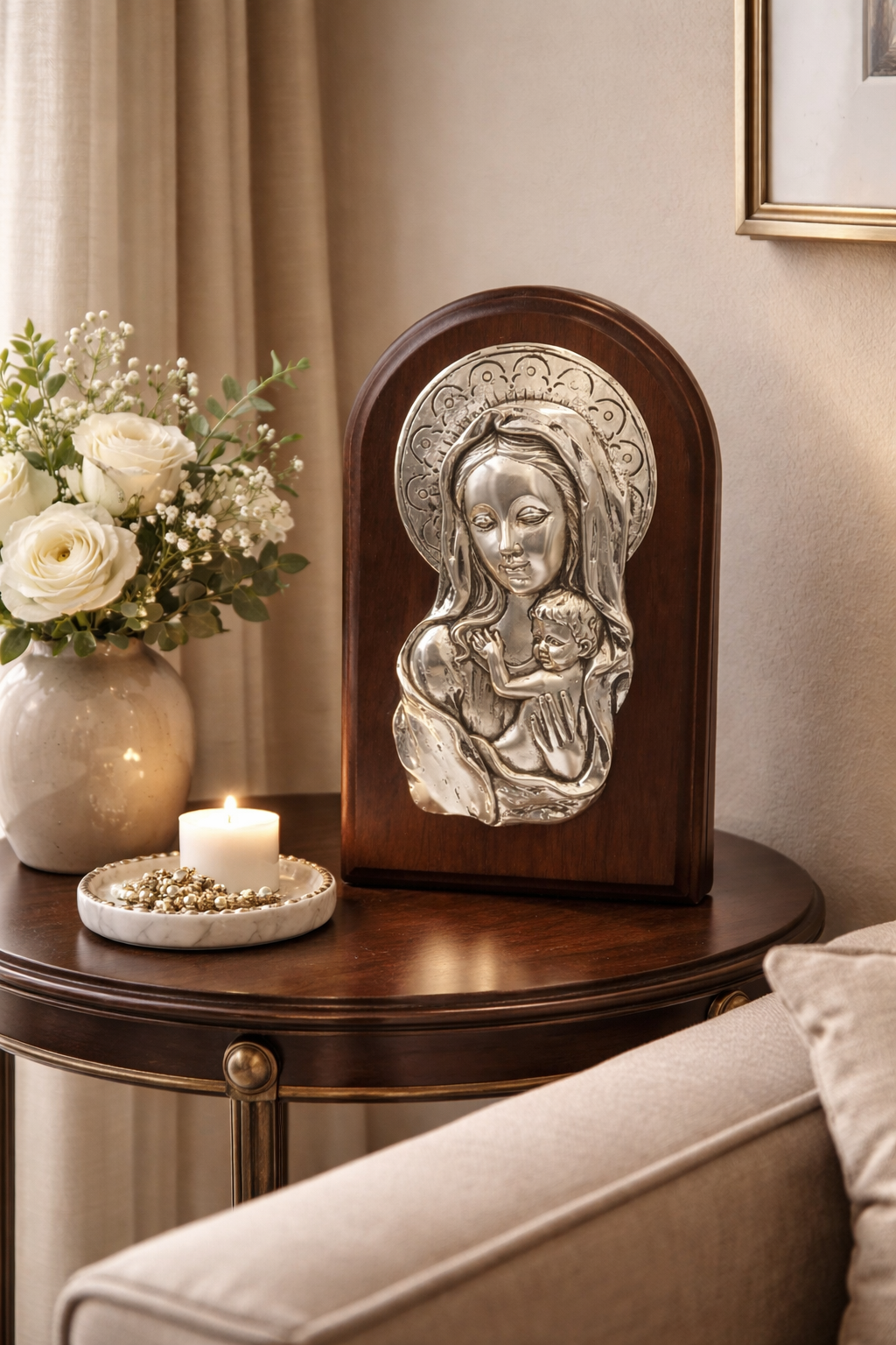 Icono de la Virgen simboliza la maternidad divina de María, la ternura, la salvación y el vínculo íntimo entre Dios y la humanidad.