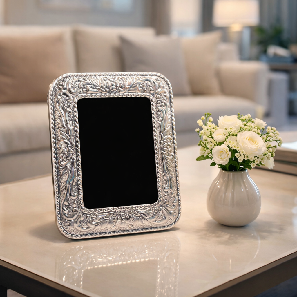 Marco de plata 925 modelo abuelo. Se puede colocar de manera horizontal y vertical.